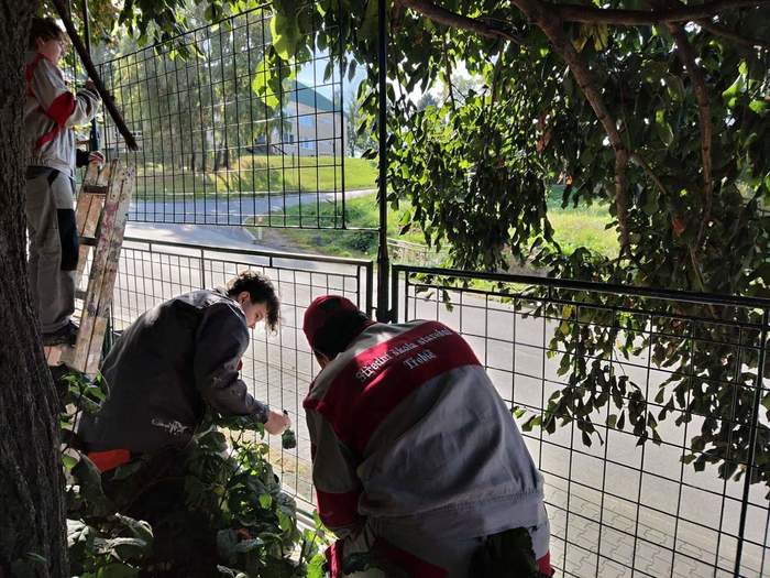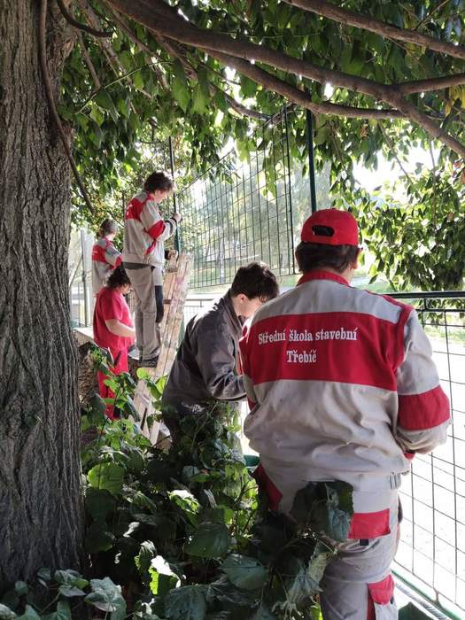 Již několik let spolupracuje naše škola se Střední školou stavební Třebíč. Spolupráce spočívá v tom, že učni nám v rámci svého praktického výcviku pomáhají s nejrůznějšími opravami a údržbou školy. Už jsme měli v předínské škole zedníky, malíře, truhláře, instalatéry i elektrikáře. Všichni začínající řemeslníci u nás pod vedením svých mistrů odvedou vždy vynikající práci, např. opravy omítek, výmalba tříd, nátěry futer a dveří, rekonstrukce sociálního zařízení u TV, oprava kamenného tarasu, dřevěný altán na školní zahradě, ......